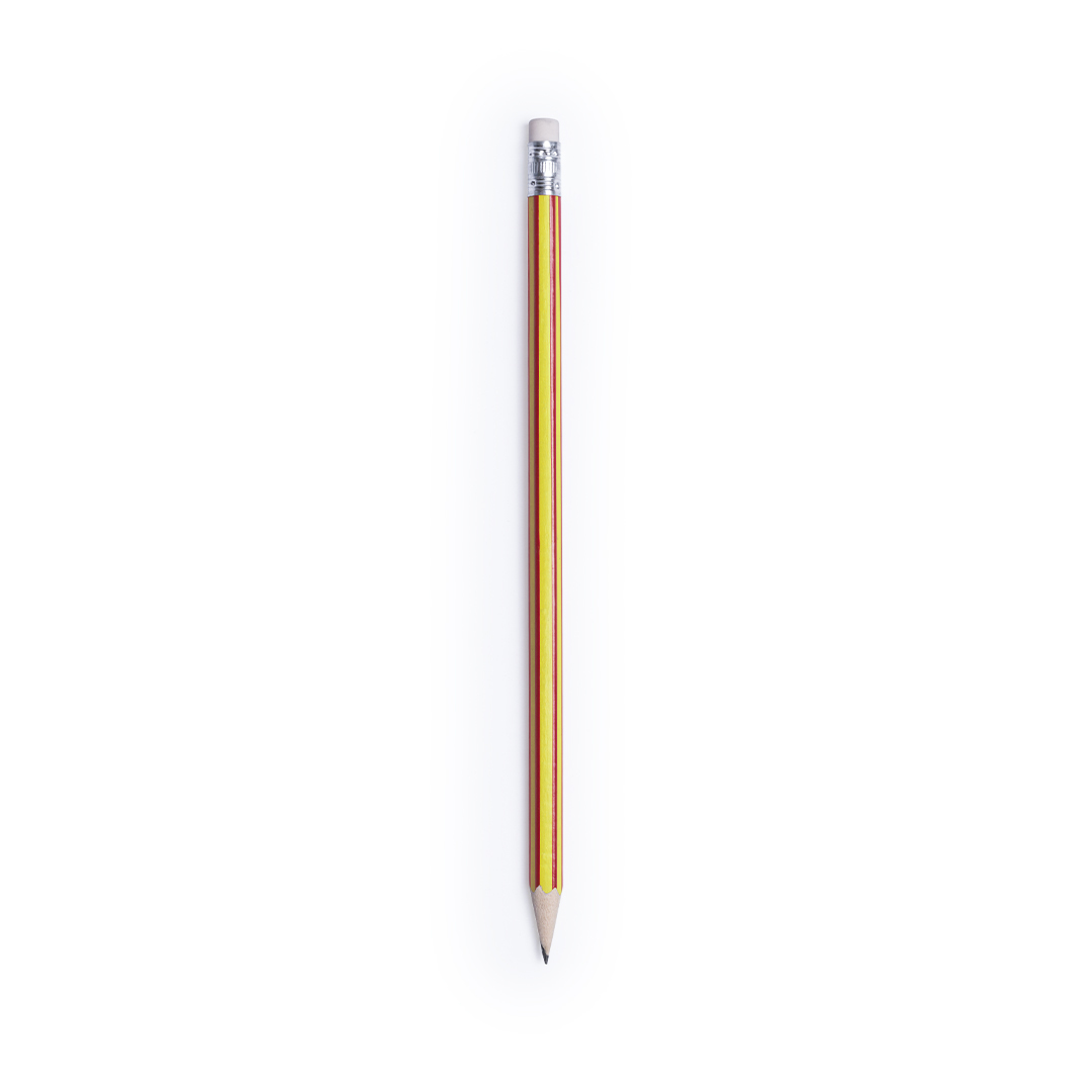 Lápiz de madera con cuerpo hexagonal de diseño bicolor en brillantes colores y con goma de borrar. Punta afilada. Precio desde 0.03 € Impuestos y personalización no incluida.